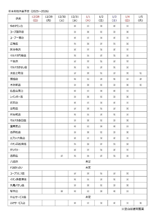 « 宮脇店・太田上町店・本社前店の定休日...