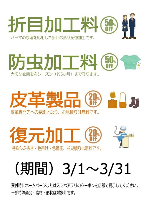 3月のサービスメニュー